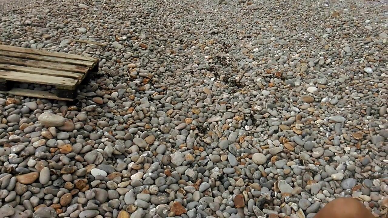 Pervert naturist husband expose his chubby wife tanning topless on rocky beach and spreading legs for others to admire and wank.