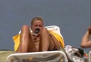 Spy beach nudist expose shaved puffy pussy