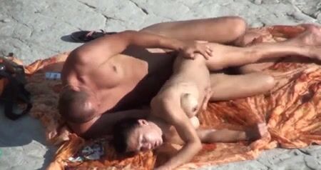 Peeping at nudist couple on the beach