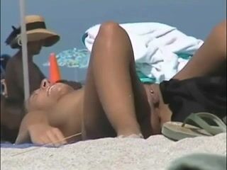 Fukbunnies at a public beach with a voyeur watching and wanking
