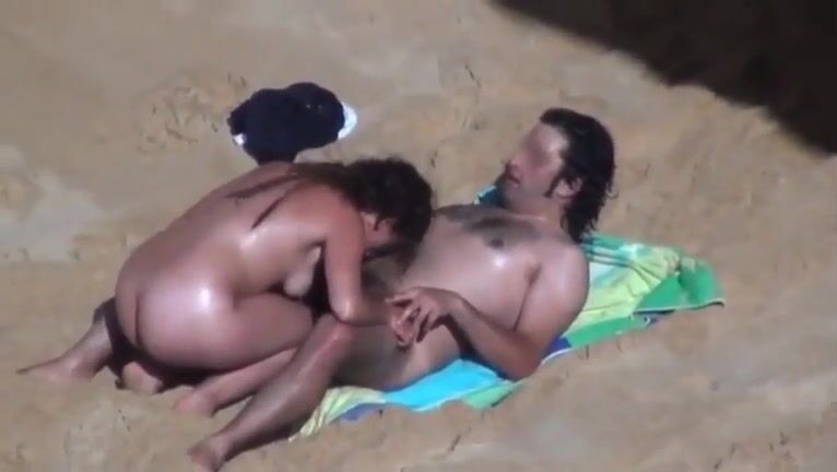 Beach spread on a nude beach of a Milf